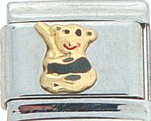 This Panda Bear Italian charm is handcrafted of 18K gold, enamel and stainless steel and is compatible with all well known manufacturers including Zoppini Firenze, Boxing, UnoDomani, Talexia, Carisma, Puzzle and Dolce Oro; and officially licensed charms from Casa D’Oro and ReFlorence which includes SpongeBob charms, Walt Disney charms, Charlie Brown and Snoopy charms and Scooby Doo charms.