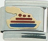 This Ship Red & Blue Italian charm is handcrafted of 18K gold, enamel and stainless steel and is compatible with all well known manufacturers including Zoppini Firenze, Boxing, UnoDomani, Talexia, Carisma, Puzzle and Dolce Oro; and officially licensed charms from Casa D’Oro and ReFlorence which includes SpongeBob charms, Walt Disney charms, Charlie Brown and Snoopy charms and Scooby Doo charms.