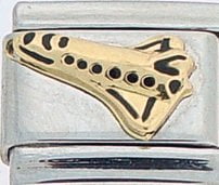 This Space Schuttle Italian charm is handcrafted of 18K gold, enamel and stainless steel and is compatible with all well known manufacturers including Zoppini Firenze, Boxing, UnoDomani, Talexia, Carisma, Puzzle and Dolce Oro; and officially licensed charms from Casa D’Oro and ReFlorence which includes SpongeBob charms, Walt Disney charms, Charlie Brown and Snoopy charms and Scooby Doo charms.