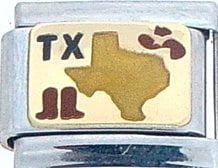Around the world! This Texas Italian charm is handcrafted of 18K gold, enamel and stainless steel and is compatible with all well known manufacturers including Zoppini Firenze, Boxing, UnoDomani, Talexia, Carisma, Puzzle and Dolce Oro; and officially licensed charms from Casa D’Oro and ReFlorence which includes SpongeBob charms, Walt Disney charms, Charlie Brown and Snoopy charms and Scooby Doo charms. Look for the Eiffel Tower, Big Ben, Pyramids of Egypt, Rialto Bridge Italian charms among other famous world landmarks to commemorate your trip around the world.