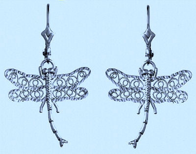 Sterling Siver Dragonfly Earrings with Filigree Wings.