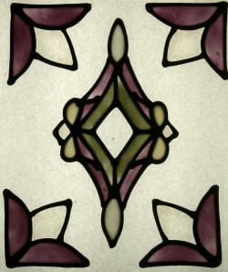 SMALL DIAMOND SET IN SAGE AND WINE. CENTER MEASURES 8.5" X 4.5". CORNERS MEASURE 3" X 3".
